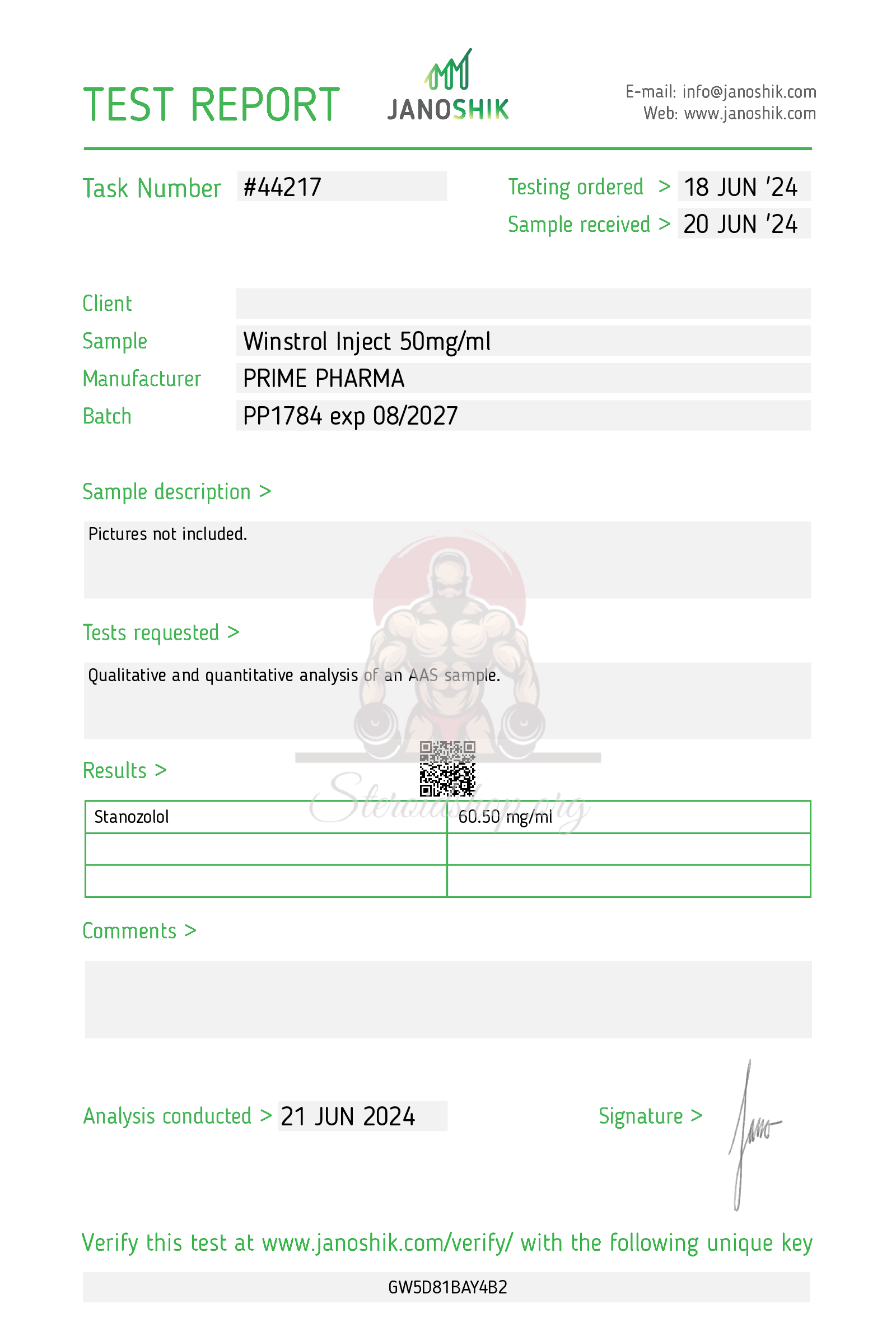 Positive Ergebnisse solcher Tests stärken das Vertrauen vieler Käufer in Winstrol Inject Prime-Pharma.